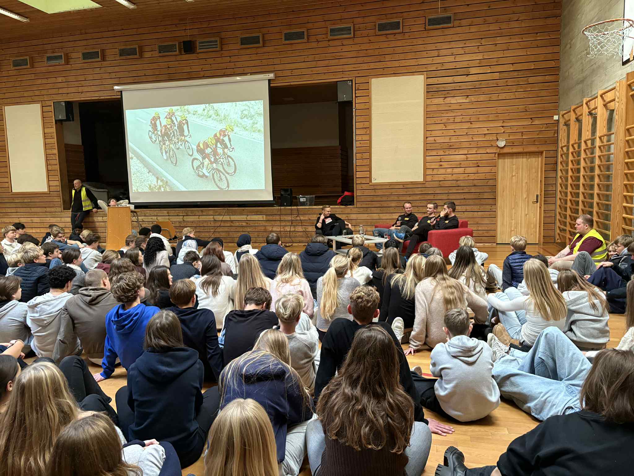 288 elever fulgte spent med da syklistene fortalte om alt fra Tour de France og lagarbeid til mer hverdagslige tema som gnagsår og barberte legger.